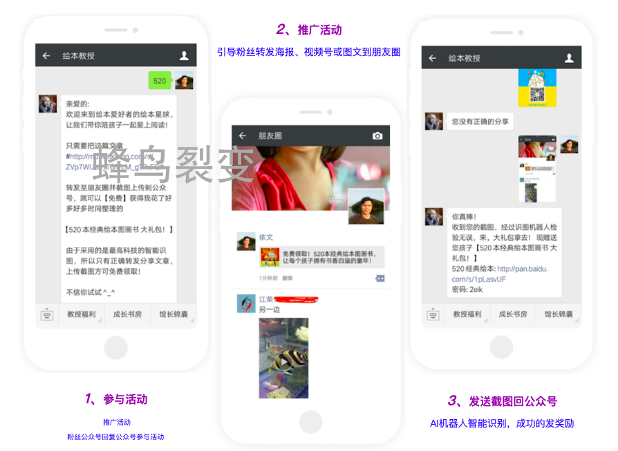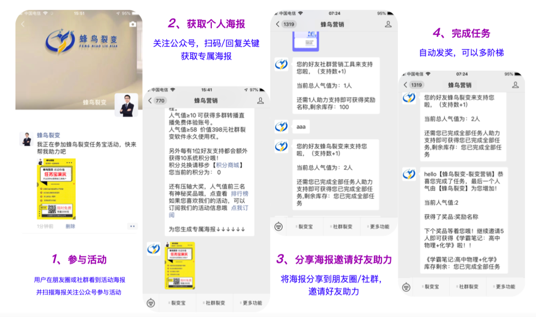 蜂鸟裂变公众号裂变工具包括: