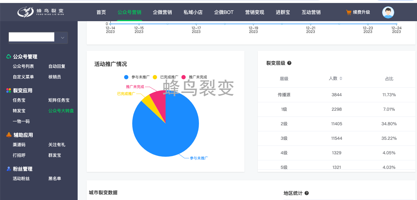 使用的系统:蜂鸟裂变SAAS系统(公众号营销-公众号大转盘)