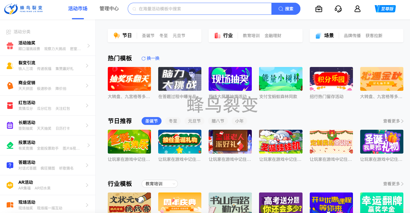 4、公众号互动游戏营销,有几百种活动模板,具体可到蜂鸟裂变互动营销官网查看体验。