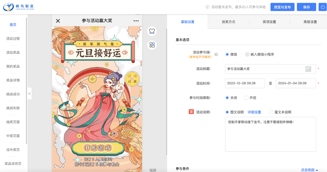 活动类型:H5游戏抽奖营销