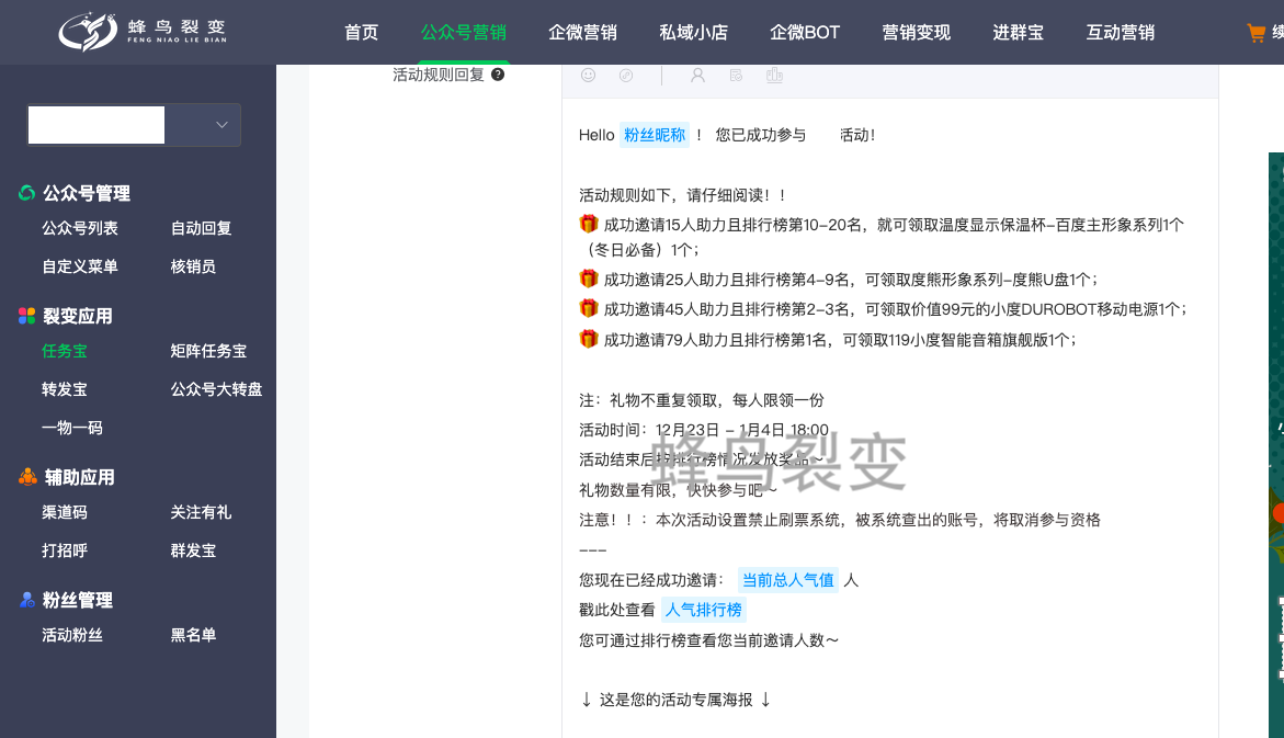 裂变工具:蜂鸟裂变-裂变营销系统-公众号营销